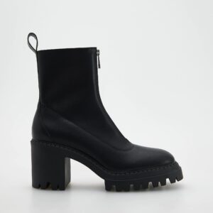 Reserved – Skórzane botki z ozdobnym zamkiem – Czarny