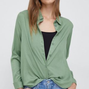 Vero Moda koszula damska kolor zielony regular z kołnierzykiem klasycznym