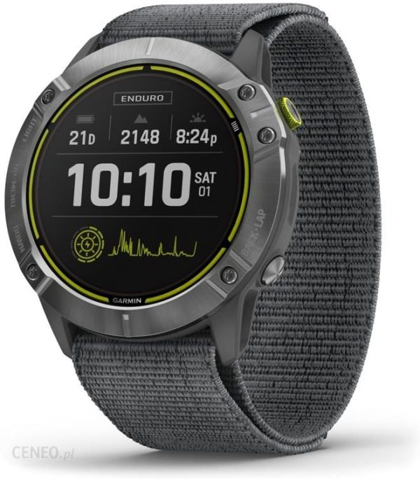 Zegarek Garmin Enduro stalowy został wyposażony w szereg rozwiązań, które pozwalają na korzystanie zarówno podczas biegów, jak i pływania czy jazdy na rowerze. Urządzenie wykrywa zmiany wysokości, przeszkody oraz wahania tętna. Pozwala ono również na stworzenie indywidualnego planu treningowego i monitorowanie aktualnych osiągnięć.Zegarek sportowy Garmin Enduro stal został wyposażony w opcje, które pozwalają na planowanie treningów i ich realizowanie zgodnie z Twoimi potrzebami. Możliwość połączenia urządzenia z nowoczesnymi smartfonami sprawdza się doskonale w sytuacji, gdy chcesz prowadzić statystyki i planować treningi na swoim telefonie. Zegarek umożliwia także dokonywanie płatności zbliżeniowych.Na szczególną uwagę zasługuje szkiełko PowerGlass pozwalające na ładowanie zegarka z wykorzystaniem energii słonecznej. Dzięki temu możesz wydłużyć czas korzystania z urządzenia nawet do kilkuset godzin przy standardowych ustawieniach.